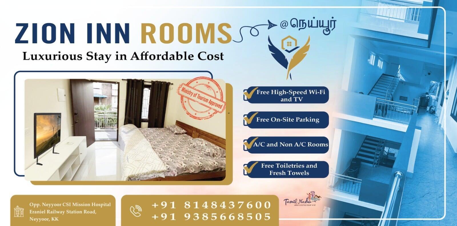 Zion Inn Homestay offers a comfortable, peaceful, and affordable stay for families, business travelers, and tourists. With 8 well-maintained rooms, we focus on providing a clean environment, essential amenities, and warm hospitality to make every guest feel at home